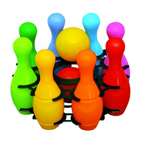 Zestaw składa się z 8 kolorowych kręgli i 2 kul. Kręgle są doskonałą formą spędzania wolnego czasu dla dziecka, ponieważ można grać w nie w pojedynkę lub w grupie, rozwijając przy tym zdolności manualne oraz precyzję.