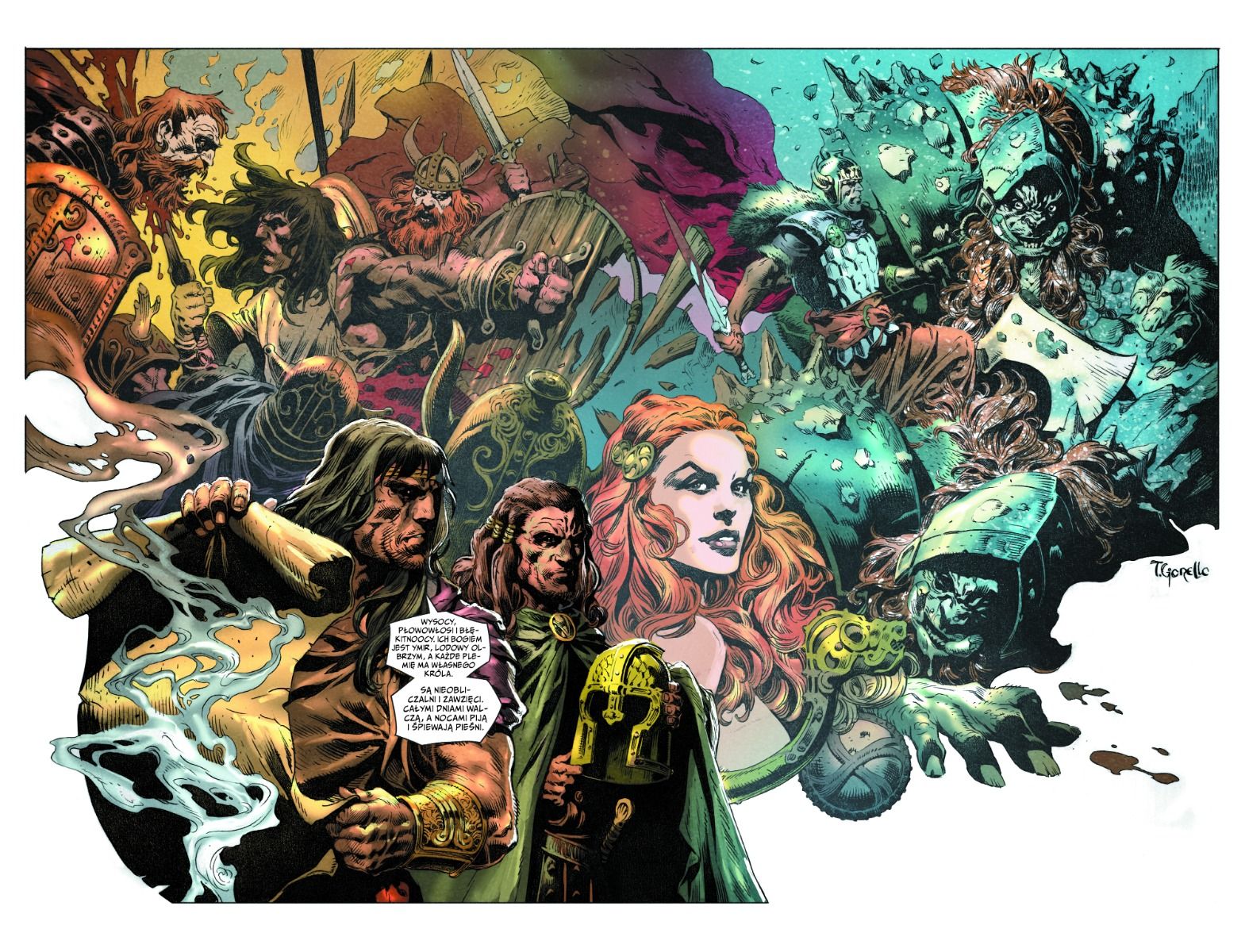 Conan powraca! Jakże ciężkie jest brzemię korony! Conan zdobył tron Akwilonii oraz rękę pięknej kobiety. Czy nadszedł więc czas, aby mógł odłożyć miecz? W żadnym razie! Albowiem gdy zły czarnoksiężnik atakuje, król Conan musi mężnie stanąć do walki. Zdobycie korony to jedno, ale utrzymanie jej to zupełnie inne wyzwanie, zwłaszcza gdy dwór pełen jest konspiratorów. Zdrajcy wybrali sobie jednak ryzykownego sojusznika - Thoth-Amona! W dodatku króla Conana nawiedza duch jego pierwszej i być może największej miłości!