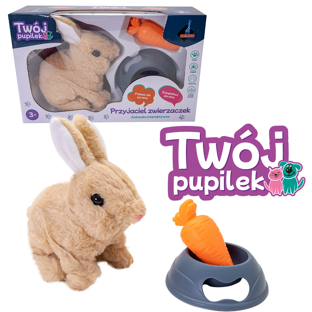 Króliczek na baterie: skacze, wydaje dźwięki, macha ogonkiem.