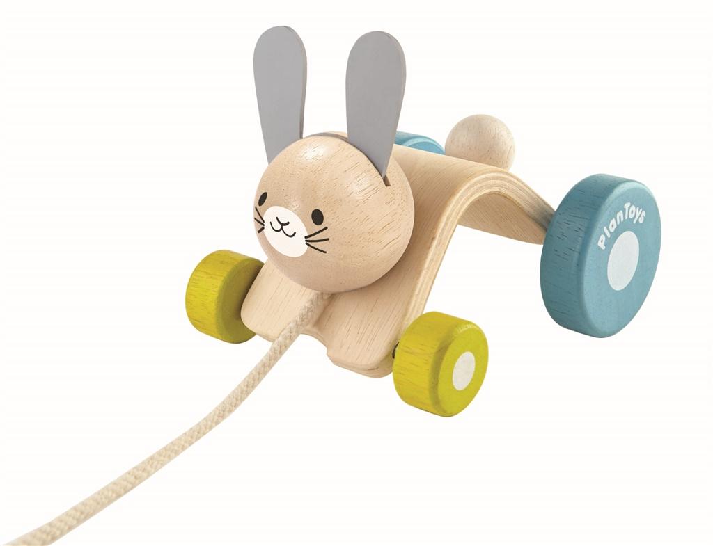 Drewniany króliczek, który podczas spaceru skacze jak prawdziwy! Teraz na spacer zamiast pieska można zabrać słodkiego króliczka.