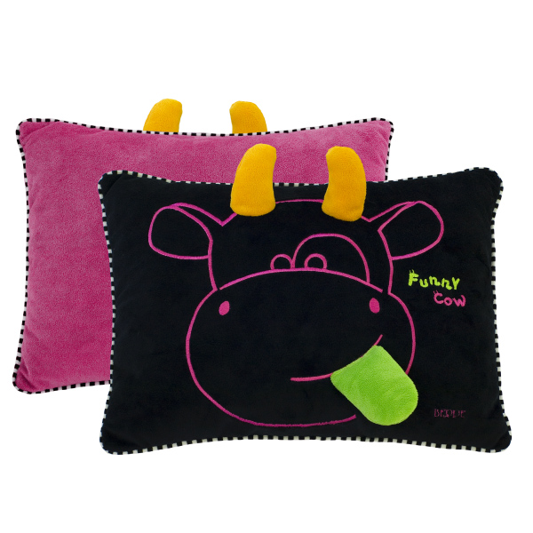 Pluszowa poduszka z kolekcj Krówka Funny. Poduszka dwukolorowa - czarno pomarańczowa.Bardzo wysoka jakość wykonania. Wymiary: 23x34 cmDla dzieci w wieku 0+
