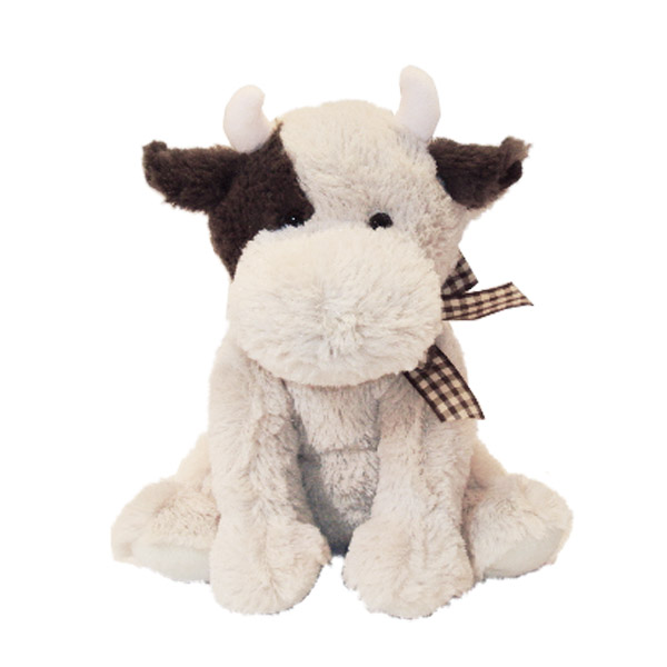 Urocza, mała krówka o średniej długości włosa, z kokardą na szyi. Miękka w dotyku, super do przytulania, Twoja przyjaciółka od zaraz.