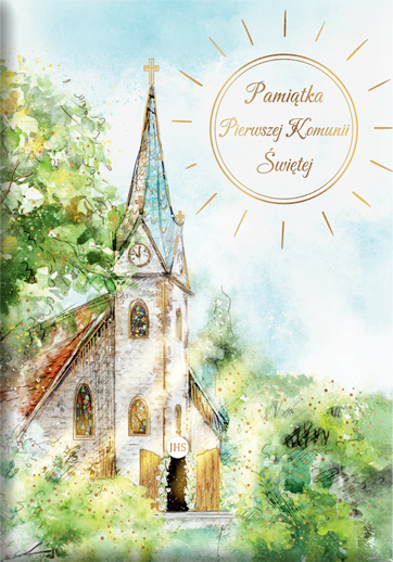 Książeczka Komunijna w formacie A5. Oprawa twarda złocona. Autorskie ilustracje, własny dobór tekstów. Książeczka 12-nasto stronicowa z kopertą na pieniążki.