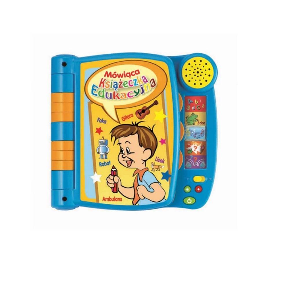 Książeczka z prawej strony ma przycisk, który po przesunięciu aktywuje 5 edukacyjnych zabaw: