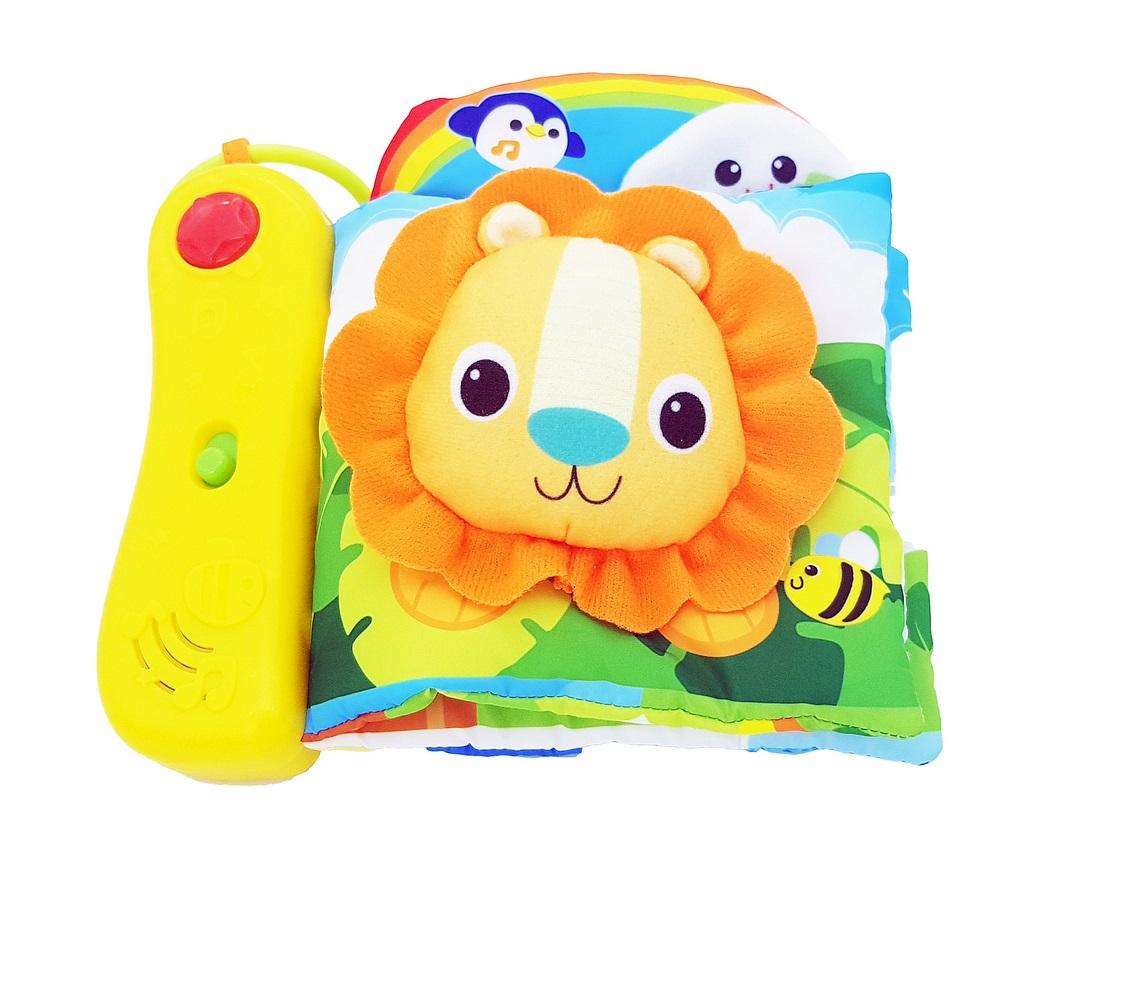 Dla najmłodszych dzieci najlepiej sprawdzają się mięciutkie książeczki z materiału. Książeczka Dżungla jest delikatna i kolorowa. Grzbiet książeczki to wygodny do chwytania pałąk na którym można włączyć grające melodie i migające światełko. Wygodne kółeczko pozwala zawiesić książeczkę w dowolnym miejscu.