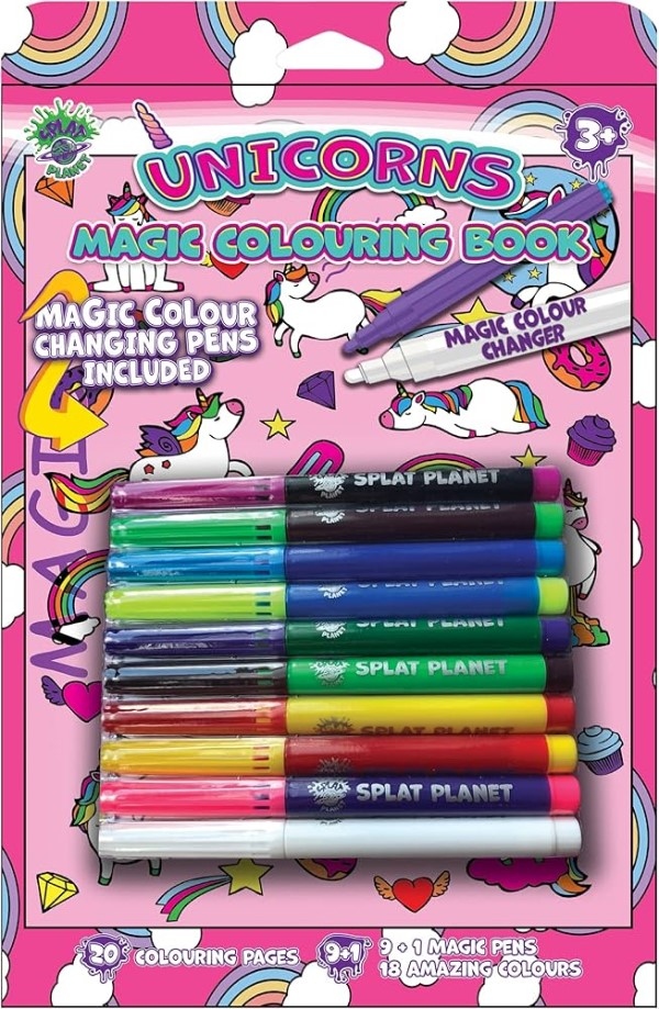 Każdy mazak w tym zestawie zmienia kolor podczas rysowania. Wystarczy kilka ruchów, aby zobaczyć, jak kolory się przekształcają tworząc wielobarwne dzieła. To doskonały sposób na rozwijanie kreatywności, wyobraźni oraz umiejętności manualnych u najmłodszych. Każda książka zawiera 20 stron z różnymi motywami przewodnimi oraz 10 mazaków zmieniających kolor.