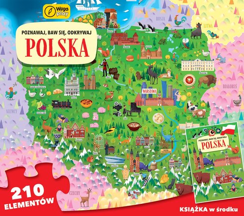 Polskę można poznawać na wiele sposobów! Zestaw puzzli z książeczką pozwoli odkrywać nasz kraj w najciekawszy sposób. W zestawie: puzzle 210 elementów + książeczka. Układanka: 70 x 44 cm