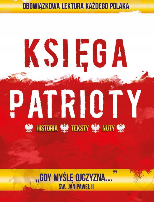 Księga patrioty” to wyjątkowa antologia najpiękniejszych i najbardziej popularnych pieśni patriotycznych: wojskowych, harcerskich, szkolnych. Wśród nich znajdują się takie lubiane i śpiewane przez pokolenia Polaków piosenki jak: „Błękitne rozwińmy sztandary”, „Białe róże”, „Góralu, czy ci nie żal” czy „Idzie żołnierz borem, lasem”. Do każdego tekstu dołączone są linie melodyczne wraz z chwytami gitarowymi, dzięki temu każdy czytelnik będzie miał możliwość samodzielnego poczucia się jak profesjonalny muzyk i samodzielnego wykonania popularnych piosenek. Ponadto każda pieśń została opatrzona unikatowym opisem wyjaśniającym genezę utworu lub nawiązującym do historii naszego kraju. Jest to znakomity sposób do zgłębienia historii Polski, nie tylko tej znanej powszechnie, ale także faktów, które nie przebiły się do świadomości społeczeństwa. Dzięki temu książka popularyzuje zamiłowanie do historii Polski.