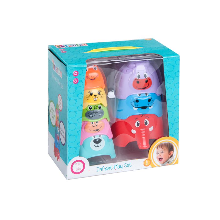 Kubeczki o różnym kształcie do układania w wieżę. Idealne do trenowania chwytania dla najmłodszych.