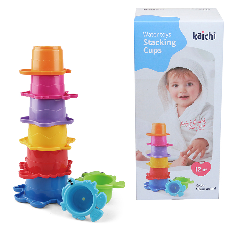 Zestaw 8 kolorowych kubeczków do wodnych zabaw dla dzieci powyżej 12 miesiąca życia.