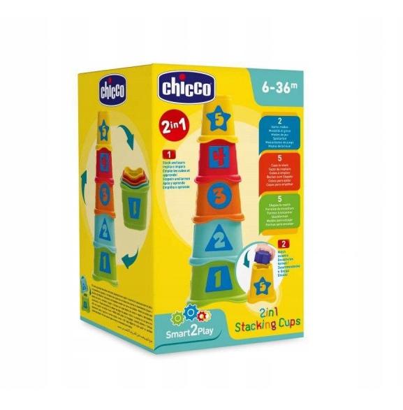 Nowa wersja klasycznej zabawki do układania. Zabawka pomaga rozwijać u dziecka logiczne myślenie, rozpoznawanie kolorów, naukę liczenia do 5 i proces kojarzenia. Kubeczki można włożyć jeden w drugi i zbudować kolorową wieżę. 5 kubeczków o różnych rozmiarach do ułożenia w kształt wieży, 5 różnych kształtów do wstawienia do otworu w kubeczkach.