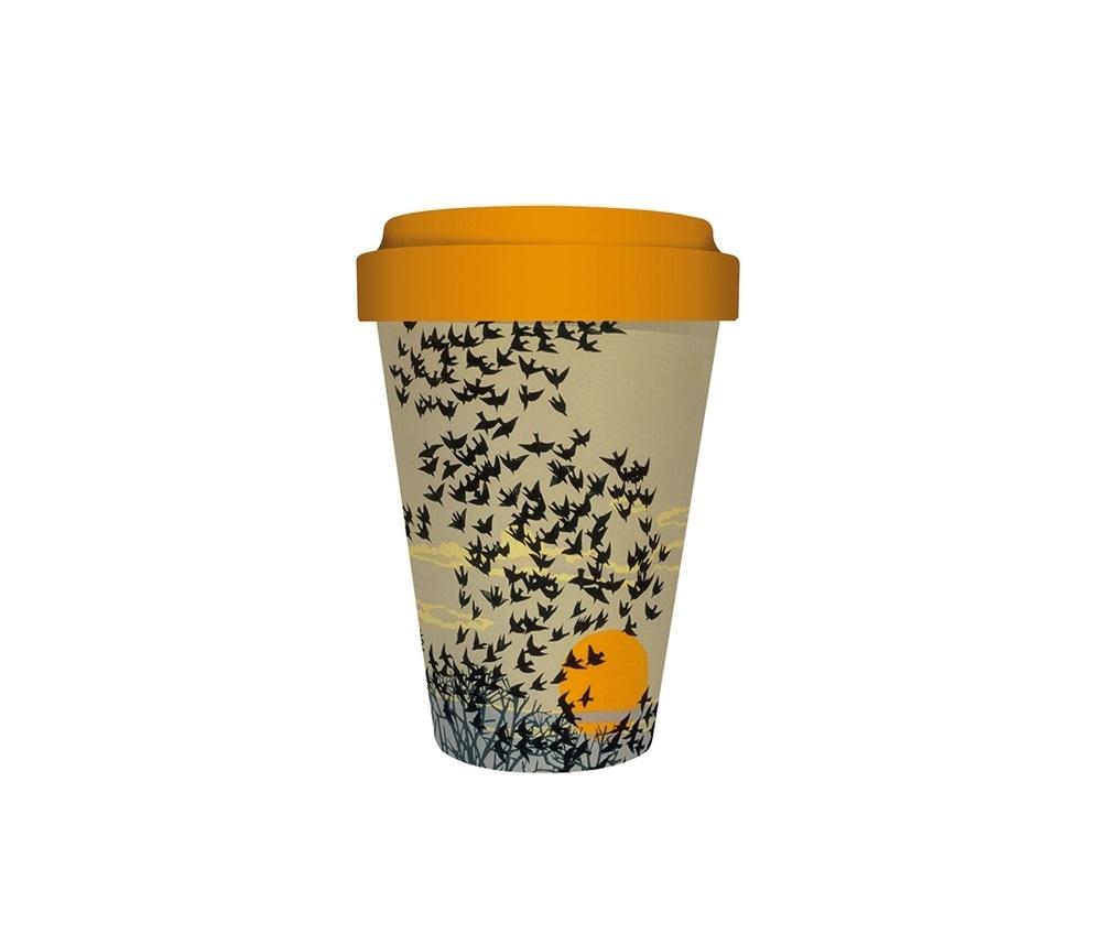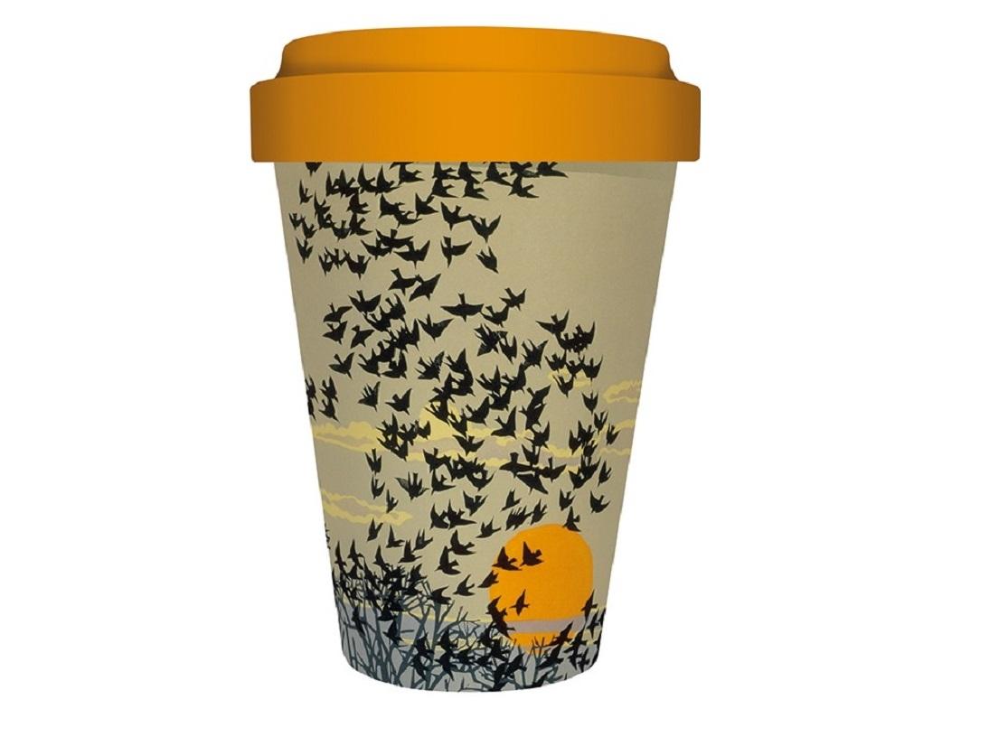 Bambusowy kubek podróżny wielokrotnego użytku, w zestawie z uchwytem odpornym na ciepło. Biodegradowalny, można go myć w zmywarce.