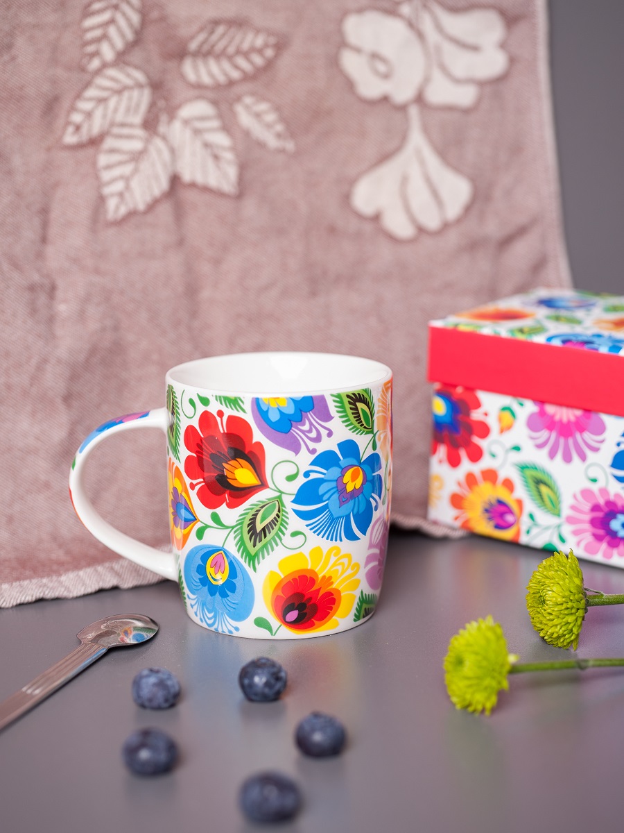 - wzór ludowy znajduje się na całej powierzchni kubka oraz uchu