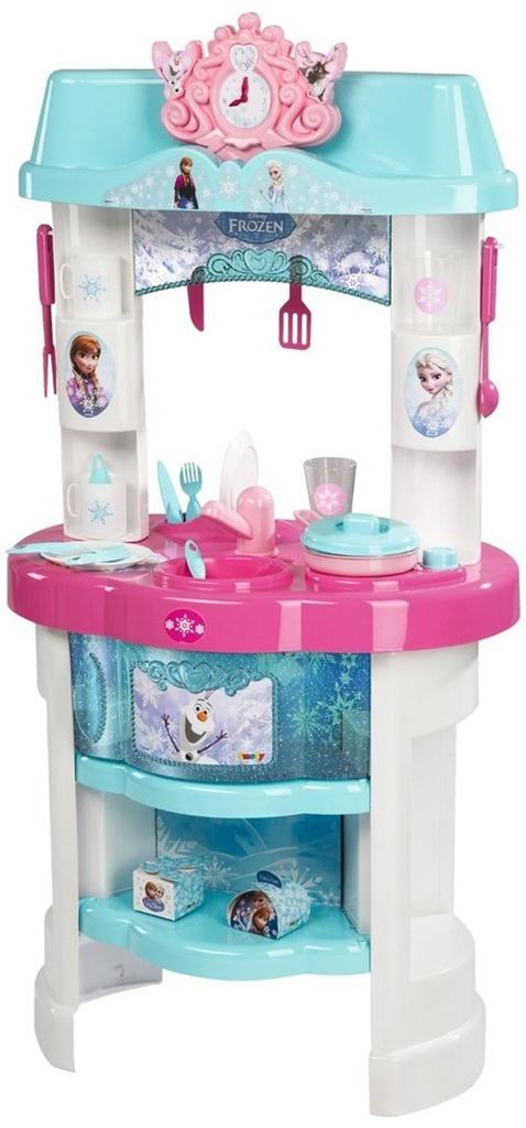 Kuchnia z wizerunkami postaci z bajki, z okapem, lodówką, półeczkami, zlewozmywakiem, w zestawie 22 akcesoria.