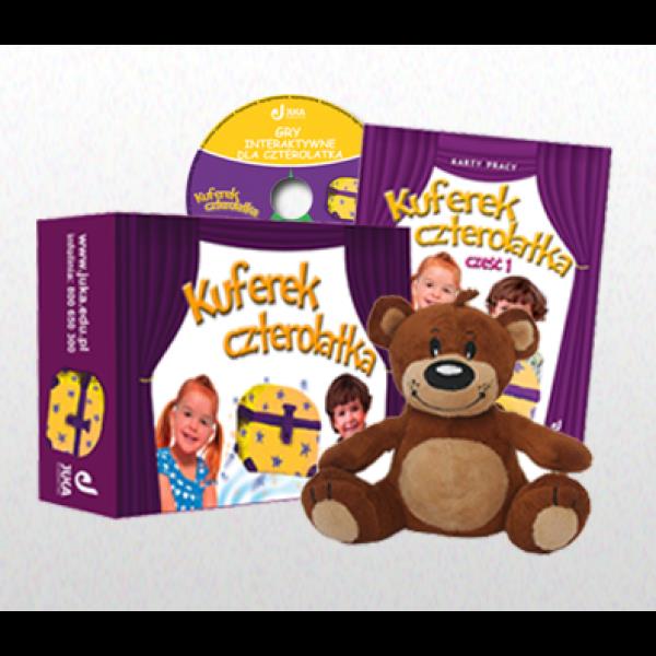 Twoje dziecko nie poszło jeszcze do przedszkola?Zadbaj ojego edukację w warunkach domowychDzięki zabawie z domowym Kuferkiem czterolatka Twoje dziecko będzie mogło: zaspokoić naturalną ciekawość bawić się i uczyć wykorzystując dostosowane do swoich możliwości kolorowe karty ćwiczyć sprawność dłoni i palców dzięki różnorodnym zabawom plastycznym grać w edukacyjne gry interaktywne opiekować się codziennie swoją własną maskotką - misiem Zabawa z domowym ,,Kuferkiem czterolatka"" wpływa korzystnie na rozwój Twojego dziecka i gwarantuje powodzenie na dalszych etapach edukacji. Dzięki domowemu kuferkowi także rodzice i opiekunowie mogą się stać aktywnymi reżyserami przyszłych sukcesów swoich pociech.Skład pakietu Kuferek czterolatka: Karty pracy, część 1 Karty pracy, część 2 Wycinanki i kolorowanki część 1 Wycinanki i kolorowanki część 2 - NOWOŚĆ Karty do pracy indywidualnej z dzieckiem Gry interaktywne - CD Miś - pluszowa maskotka dla dziecka Ulotka dla rodzica lub opiekuna ze wskazówkami, jak bawić się z dziećmi wykorzystując materiały z domowego Kuferka czterolatka