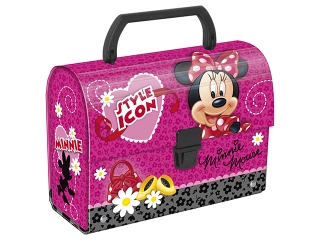 Kuferek wykonany jest z tektury pokrytej lakierem UV, posiada plastikową rączkę i zapinkę. Idealnie nadaje się do przechowywania drugiego śniadania, bądź różnych przyborów szkolnych i plastycznych.