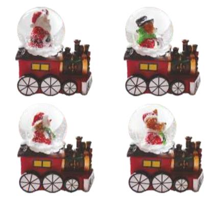 Kula z podświetleniem LED, lokomotywa i mikołaj, MIX 4 wzorów.