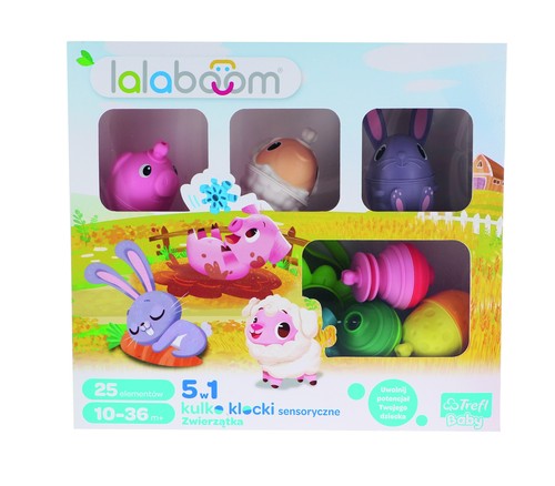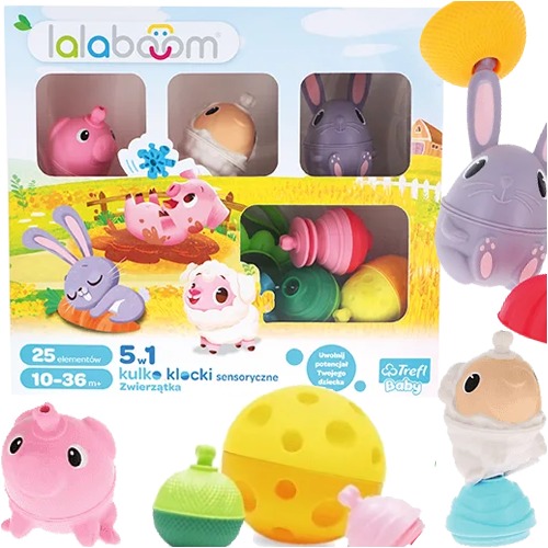 Zestaw prezentowy kulko-klocków - zwierzątka farma - 25 elementów to edukacyjna zabawka preznaczona dla dzieci od 10. miesiąca życia. Zestaw Lalaboom to nie tylko dobra zabawa, ale również wartościowy rozwój od najmłodszych lat. W opakowaniu znajdziesz 25 elementów, które można łączyć, skręcać, mieszać oraz nawlekać. Zestaw zawiera trzy zwierzątka: świnka, owieczka i królik.