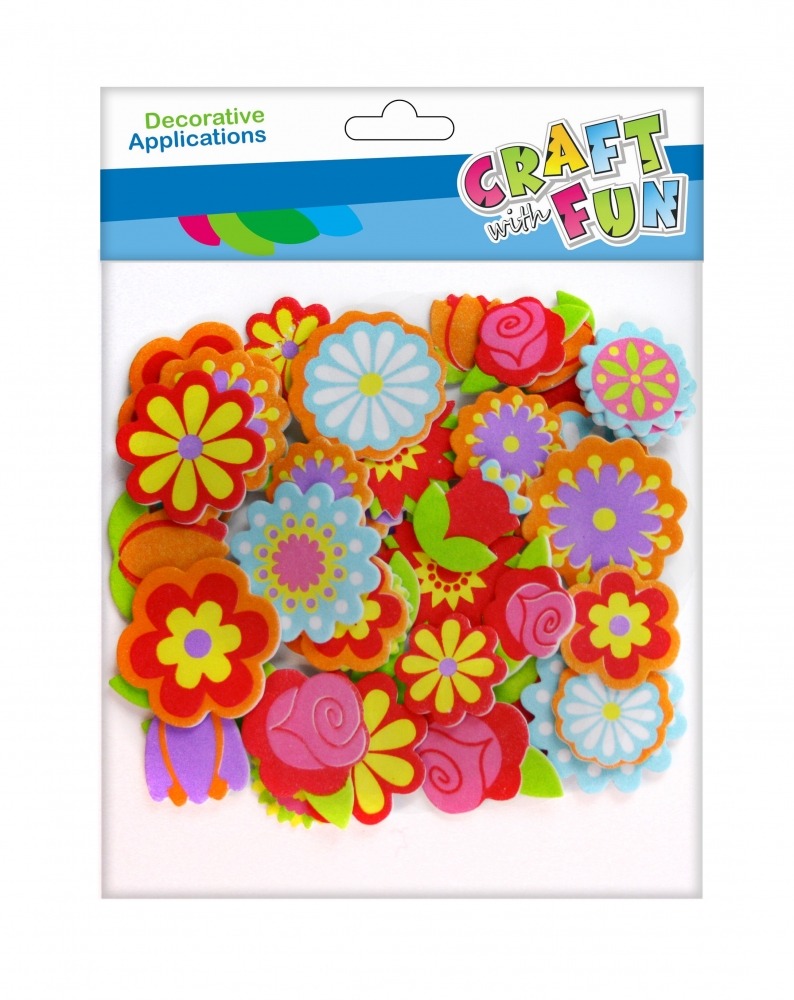 Zawartość opakowania: 48 szt. piankowych naklejek kolorowych kwiatów. Wszystkie elementy wykonane z pianki.