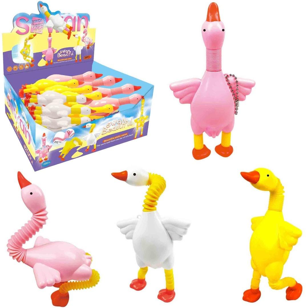 Elastyczna Gąska "Stretch Swan Beautiful" - Rozciągnij i Baw się Bez Końca! Opis produktu: Przedstawiamy wesołą i niezwykle elastyczną gąskę "Stretch Swan Beautiful", która zapewni godziny kreatywnej zabawy i odstresowania! Ta urocza figurka z rozciągliwą szyją i nogami to idealny gadżet dla dzieci i dorosłych, którzy cenią sobie zabawki sensoryczne i antystresowe. Cechy, które zachwycą: Ekstremalna Elastyczność: Szyja i nogi gąski wykonane są z elastycznych, harmonijkowych elementów, które można dowolnie rozciągać, zginać i formować w różne kształty. To niesamowicie satysfakcjonujące! Wesoły Design: Gąski dostępne są w kilku żywych, atrakcyjnych kolorach (różowy, żółty, biały), z sympatycznymi pyszczkami i skrzydłami. Funkcja Sensoryczna/Antystresowa: Manipulowanie elastycznymi elementami zabawki działa odstresowująco i relaksująco. Jest to doskonały sposób na rozładowanie napięcia i poprawę koncentracji. Rozwój Motoryki Małej: Rozciąganie i formowanie gąski pomaga rozwijać precyzję ruchów palców i dłoni, a także koordynację wzrokowo-ruchową. Trwała Konstrukcja: Wykonana z wytrzymałego, elastycznego tworzywa, które jest odporne na wielokrotne rozciąganie. Idealna dla Różnych Grup Wiekowych: Chociaż na opakowaniu jest oznaczenie "18M+" (prawdopodobnie od 18 miesięcy), jej antystresowe właściwości sprawiają, że będzie atrakcyjna również dla starszych dzieci i dorosłych. Praktyczny Brelok: Niektóre modele mogą posiadać metalowy łańcuszek, umożliwiający przypięcie gąski jako breloka do plecaka czy kluczy. Idealna dla: Dzieci poszukujących interaktywnej i angażującej zabawki. Osób szukających gadżetu antystresowego lub sensorycznego. Na prezent, jako drobny upominek lub dodatek do większego prezentu. Materiał: Wysokiej jakości, bezpieczne, elastyczne tworzywo sztuczne. Wiek: 3+ Uwaga: Kolory wysyłane losowo, w zależności od dostępności wzoru. Wielkość: 16 cm