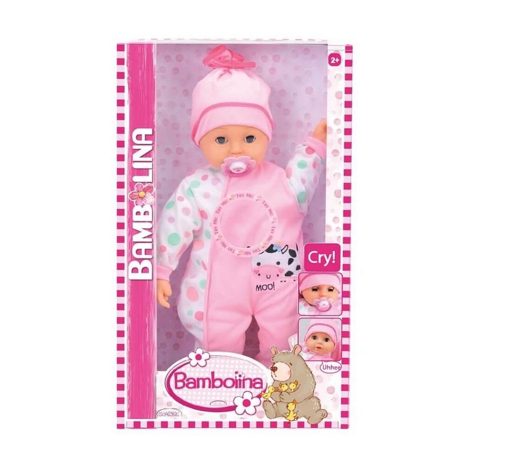 Lalki, to najstarsze znane światu zabawki. Niewątpliwą ich zaletą jest to, że można bawić się nimi wszędzie, zarówno w podróży, w domu, czy wszędzie tam, gdzie dziecko postanowi zabrać swoją lalę. Lala Bambolina wyglądem przypomina prawdziwe dziecko. Jest ubrana w różowe śpioszki i czapeczkę. Ma miękki brzuszek, jej oczy otwierają się i zamykają. Lala płacze jak niemowlak, uspokaja się po podaniu smoczka. Jest bezpieczna. Rozwija wrażliwość i opiekuńczość. Została wykonana z miękkiego, przyjemnego w dotyku plastiku. Pobudza wyobraźnię, stając się towarzyszem zabaw. Kołysanie lalki pozytywnie wpływa na rozwój dziecka. Wysokość lali 46 cm.