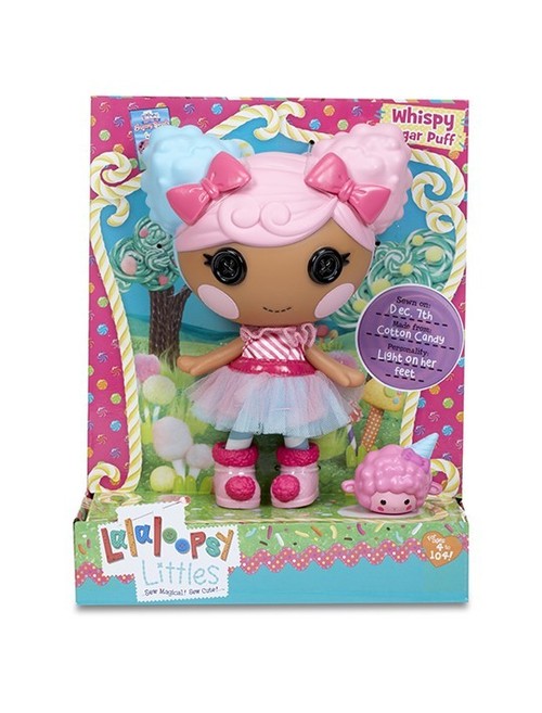 Lalaloopsy Littles Whispy Sugar Puff ™ jest jasna i lekka , bardzo llepka i słodka. Czasem jest tak lekka , że mały wiatr może podnieść ją z ziemi, ale zawsze wraca z dużym słodkim uśmiechem . Lalaloopsy ™ Słodkie ™ są urocze jak cukierki. Zbierz je wszystkie !Data urodzenia:07 grudnia ( Narodowy Dzień waty cukrowej )