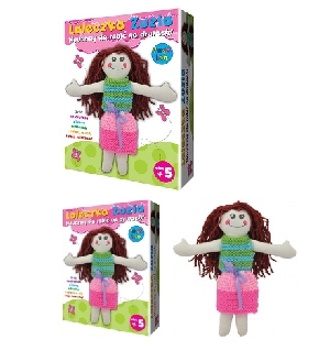 Zestaw dla dzieci wieku powyżej 5 lat . W zestawie znajduję się szmaciana laleczka raz włóczka i druty do zrobienia ubrania dla laleczki.