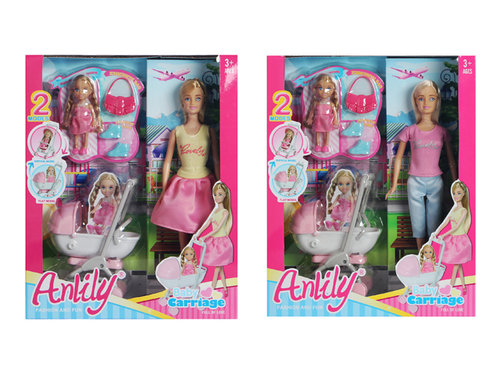 lalka 30 cm z dzieckiem i wózkiem, mix 2 wzory
