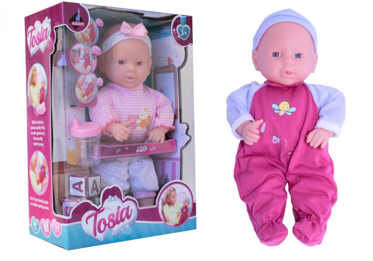 Lalka, która mówi i się śmieje. mówi: mama, papa W zestawie dwa ubranka baterie - 3 x AAA (baterie załączone)