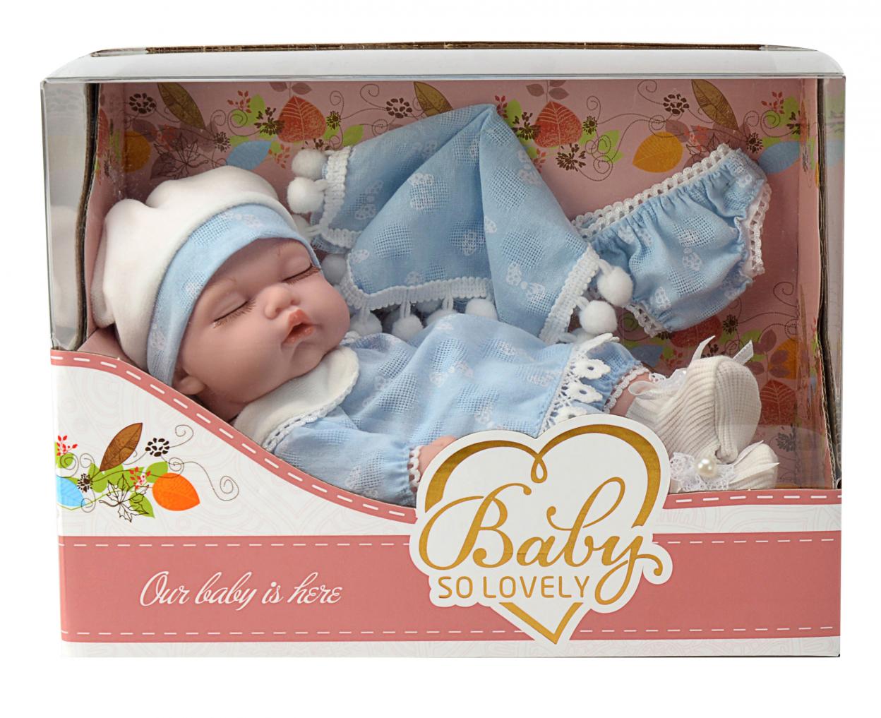 Lalka wykona z miękiego i przyjemnego w dotyku tworzywa Niebieskie ubranko 25 cm