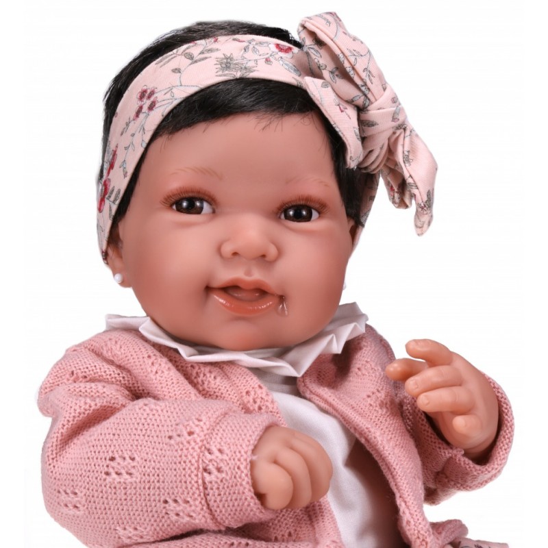 Bobas hiszpańskiej marki Antonio Juan 50036 (5036) uzupełnia kolekcję lalek, które można kąpać. Lalka Recien Nacida ma 42 cm wysokości i w najmniejszym szczególe przypomina prawdziwą dziewczynkę. Ma zaznaczoną płeć (dziewczynka), a także nieodciętą pępowinę jak prawdziwy niemowlak. To właśnie za sprawą przyjemnego i gładkiego w dotyku tworzywa - winylu bobasa można zabrać do zabawy w wodzie oraz wspólnych kąpieli. Jednak wiadomo, że pluskanie powinno odbyć się pod czujnym okiem rodzica :)