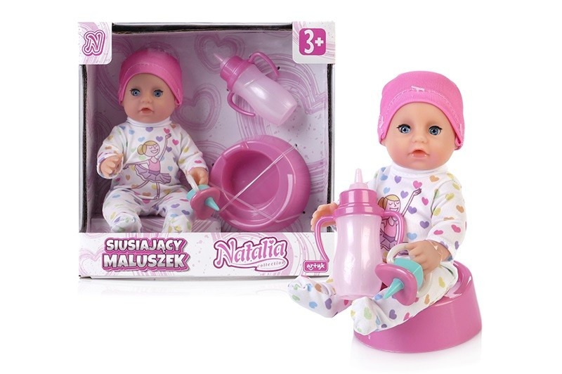 Funkcje: siusia po podaniu butelki z wodą, zamyka oczy.