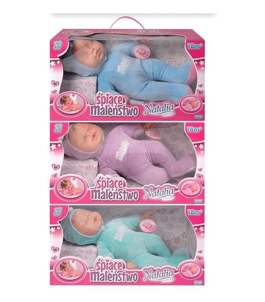 Miękka lalka o wysokości 39 cm. 4 kolory: fioletowy, różowy, niebieski, turkusowy