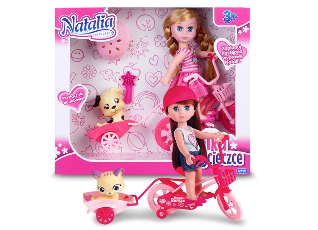 W ZESTAWIE: LALKA 16 CM., ROWER, KOTEK, AKCESORIA, WYM OPK: 20X25X7 CM.