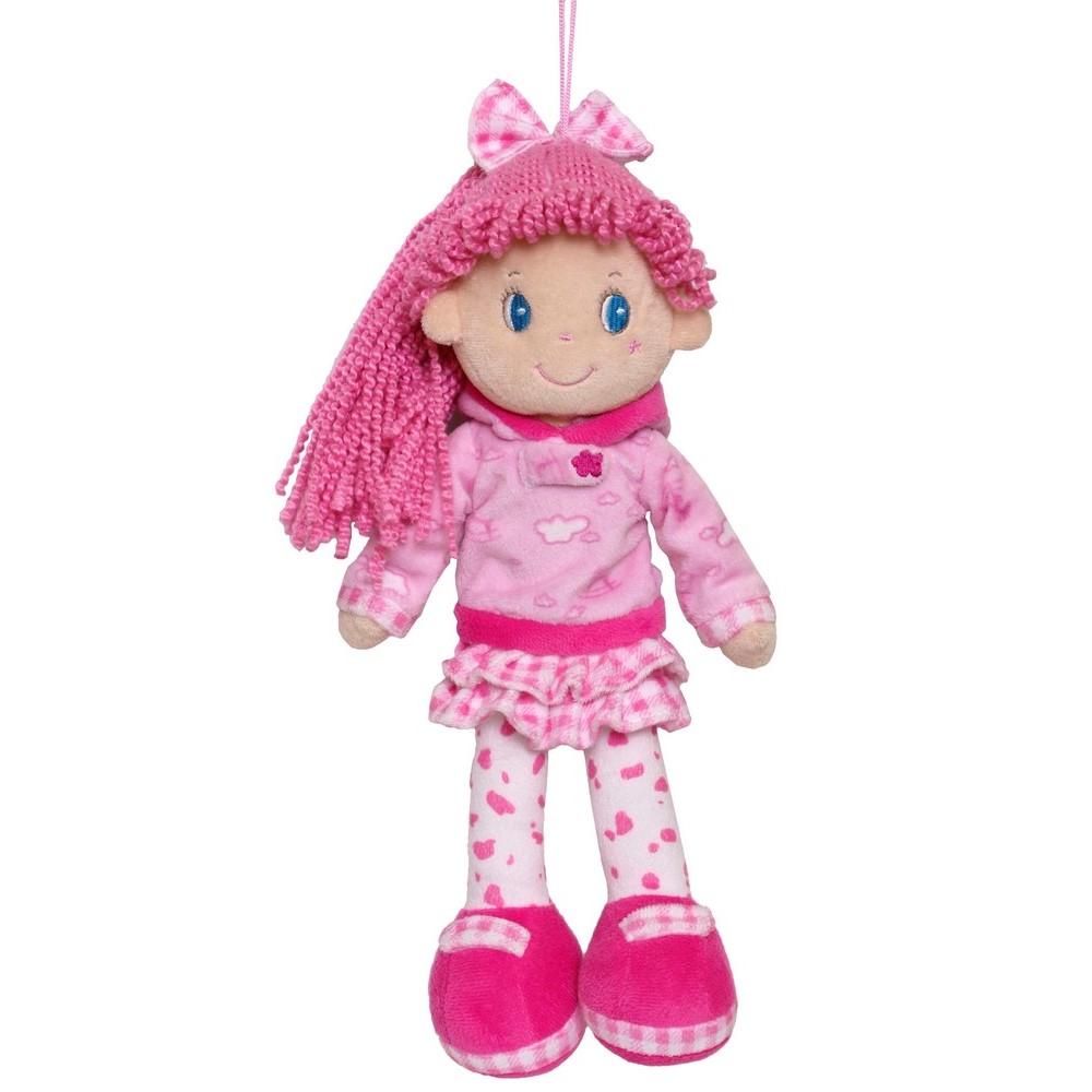 Wesoła i kolorowa lalka szmacianka do przytulania. Długie włosy, związane w dwa kucyki można czesać i ponownie splatać w warkocz. Laleczka ubrana w kolorową sukieneczkę i bluzę z kapturem.
