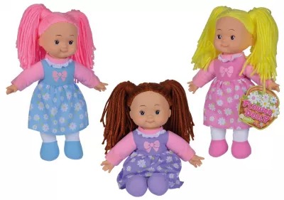 Wełniane lalki Flower Dolly są dostępne w trzech różnych kolorach. Różowe włosy i niebieska sukienka, brązowe włosy i fioletowa sukienka czy żółte włosy i różowa sukienka dzieci mogą same wybrać swoją ulubioną kolorową lalkę. Cała trójka nosi urocze kwieciste sukienki i jest miękka i milutka.