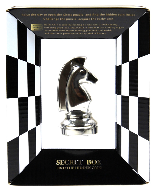 Szachy to strategiczna gra umysłowa, wymagająca skupienia i koncentracji. Aby rozwiązać łamigłówki z serii Szachy, również będziesz musiał odrobinę pogłówkować. Każda figura szachowa kryje w sobie szczęśliwą monetę. Twoim zadaniem jest ją odnaleźć. Spróbuj rozszyfrować tajny system zabezpieczeń - unikalny dla każdej figury. Podejmiesz wyzwanie? Przepięknie wykonane, metalowe figury szachowe to prawdziwy rarytas dla miłośników łamigłówek oraz dla miłośników klasycznej, znanej na całym świecie gry planszowej. Idealne na prezent dla kolekcjonerów. Spróbuj skompletować wszystkie figury i... zagrać w Szachy. Nic nie stoi na przeszkodzie! Monety znajdujące się wewnątrz figur, posiadają oryginalne wzory - każda figura inny. Wzory znajdują się zarówno na awersie, jak i rewersie. Zdjęcie monety nie przedstawia jej rzeczywistej wielkości (średnica monety - 12 mm). Hanayama od ponad siedemdziesięciu lat jest znanym producentem i sprzedawcą zabawek, tradycyjnych gier i łamigłówek. Od samego początku kładł wielki nacisk na twórcze pomysły, wysoką jakość i przyjazną obsługę. Wszystkie prezentowane łamigłówki świetnie sprawdzają się w zróżnicowanym towarzystwie. Bawią, uczą, zmuszają do myślenia i uwolnienia twórczej wyobraźni. Pozwalają na znalezienie ""wspólnego języka"" ludziom w różnym wieku. Często pierwsze, przypadkowe z nimi ""spotkanie"" staje się początkiem wielkiej pasji i łączy całe rodziny wokół wspólnego hobby.