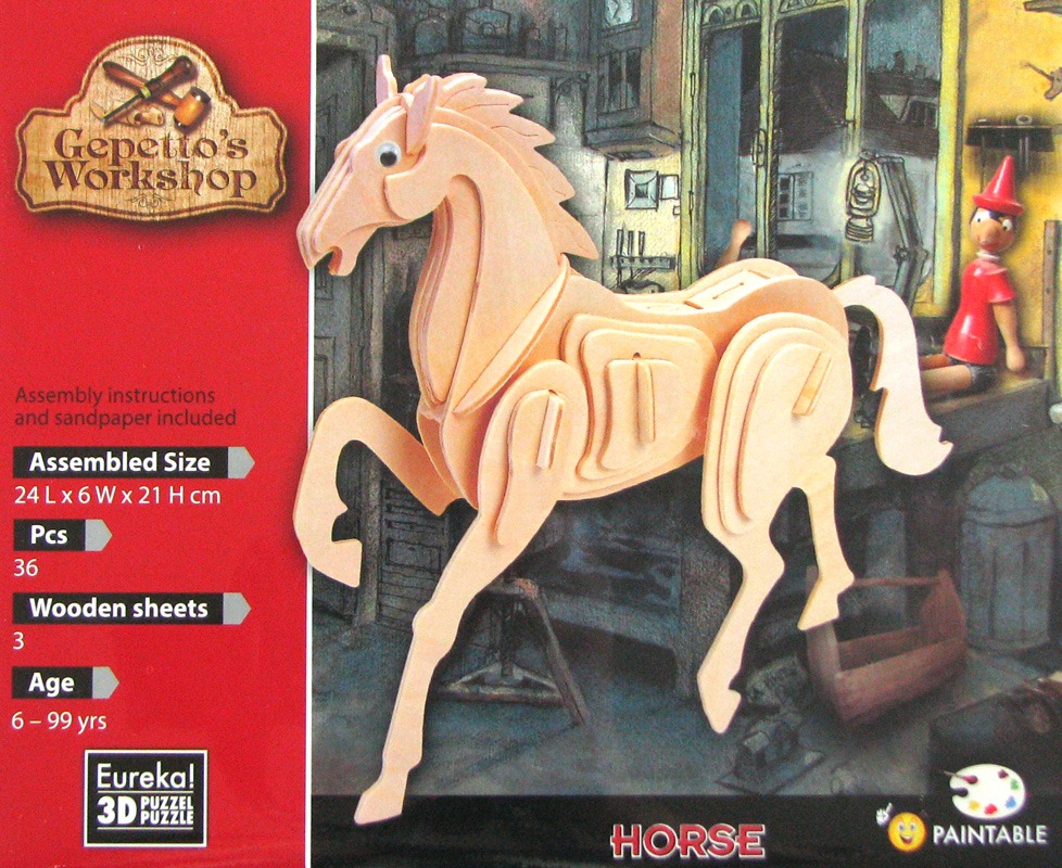 Eureka 3D Puzzle jest cenionym producentem łamigłówek w Europie. Różnorodny asortyment, niezmienna dbałość o wysoką jakość wykonania oraz duża troska o estetykę i wartość intelektualną oferowanych produktów zjednały firmie uznanie na całym świecie. Warsztat Gepetto to magiczne miejsce, gdzie wszelkiego rodzaju zwierzęta i przedmioty zostają powołane do życia! Pomysłowe wzory, wysokiej jakości drewno i staranne wykonanie sprawiają, że łamigłówki będą idealnym elementem dekoracji każdego pokoju. Dodatkowym atutem jest możliwość ich pomalowania, w tym przypadku liczy się tylko wasza kreatywność! Świetny pomysł na prezent! Wymiary zbudowanego modelu: 240x60x210 mm Wszystkie prezentowane łamigłówki świetnie sprawdzają się w zróżnicowanym towarzystwie. Bawią, uczą, zmuszają do myślenia i uwolnienia twórczej wyobraźni. Pozwalają na znalezienie ""wspólnego języka"" ludziom w różnym wieku i stają się początkiem wielkiej pasji, często łącząc całe rodziny wokół wspólnego hobby. Wśród produktów Eureki, każdy może znaleźć coś dla siebie! Sprawdź, czy poradzisz sobie z rozwiązaniem rewelacyjnych łamigłówek belgijskiej firmy Eureka. A może masz wrodzoną zdolność do rozwiązywania zadań logicznych? Rozwiązujesz je szybciej niż inni? Proponujemy zapoznanie się z szalenie pomysłowymi i bardzo dobrze wykonanymi łamigłówkami, których rozwiązanie zapewni Ci godziny fantastycznej zabawy. W naszej ofercie prezentujemy łamigłówki logiczne dla osób w każdym wieku. Gwarantujemy duże zainteresowanie i udaną zabawę. Spraw komuś prezent, który inspiruje do myślenia i stanowi nie lada wyzwanie! Wystaw swój spryt oraz intelekt na ciężką próbę! Pamiętaj! Szukaj rozwiązania BEZ UŻYCIA SIŁY, aby nie uszkodzić swojej łamigłówki.
