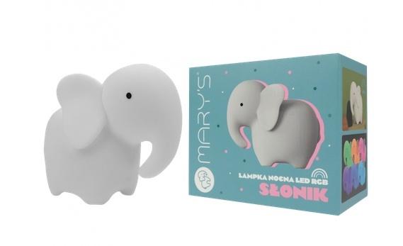 Lampka Nocna LED Słoń Biały RGB z Pilotem Marys