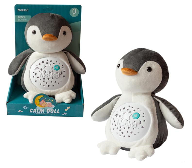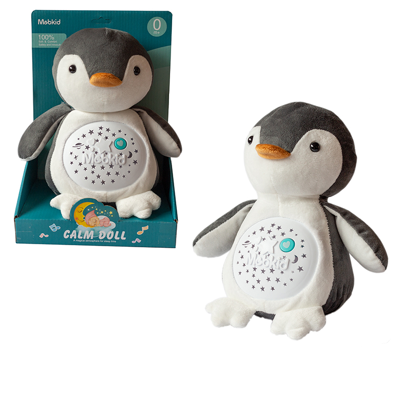 Pingiwnek (25 cm na siedząco) jest bardzo przyjemny w dotyku. Po wciśnięciu serduszka zaczyna grać usypiające, spokojne melodie, które ułatwią zasypianie maluszkowi.