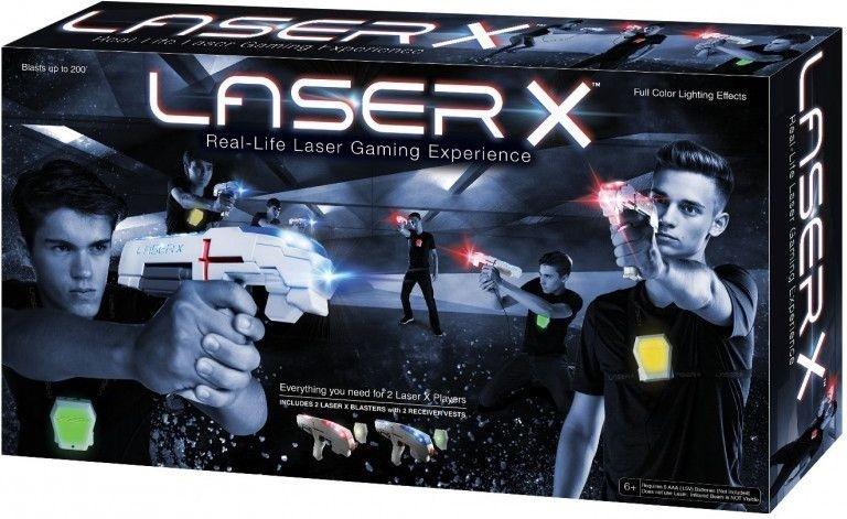 Zestaw zawiera: 2 Blastery Laser X, 2 kamizelki z czujnikiem, wymaga 6 baterii AAA(1,5 V)- brak w zestawie