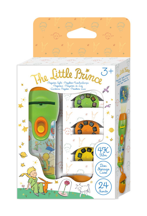 Zamień swój pokój w magiczną baśniową krainę dzięki tej fantastycznej latarce, która jest również projektorem wyświetlającym przepiękne ilustracje z książki Mały Książe. Po prostu włącz latarkę, włóż dysk i zaczynaj wspaniałą, pełną kolorów zabawę. To świetny towarzysz przed snem, który sprawi, że zasypianie będzie przyjemniejsze. Łatwo wymieniaj i zmieniaj slajdy, odciągając plastikową klapkę i wkładając wybrany dysk, a następnie obracaj dysk, aby przenieś się do świata Małego Księcia. Latarko-projektor mierzy 12 cm długości i około 4 cm średnicy w najszerszym miejscu. Zasilany bateriami - 2 x AAA ( nie załączone w zestawie). Dla dzieci powyżej 3-go roku życia. Zestaw zawiera latarkę oraz 3 dyski slajdów z 24 kolorowymi fotografiami.