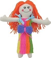 Zestaw dla dzieci wieku powyżej 5 lat . W zestawie znajduję się szmaciana laleczka raz włóczka i druty do zrobienia ubrania dla laleczki.