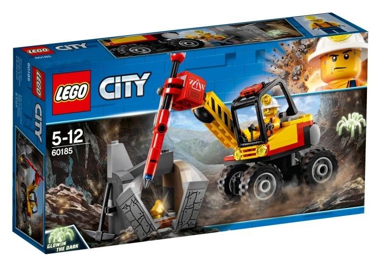 Kruszarka górniczą z obrotową kabiną i działającym młotem pneumatycznym na unoszonym ramieniu.
