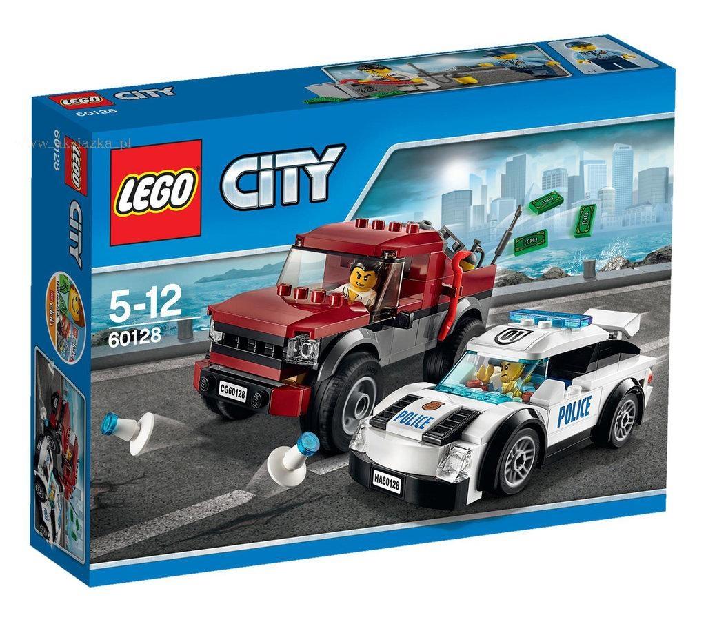 Ale gratka, można przejechać się po mieście policyjnym supersamochodem! Nagle radio podaje, że komuś skradziono sejf. Za zakrętem widzisz złodzieja, który właśnie próbuje włamać się do skradzionej kasy pancernej. Będzie próbował uciec swoim pickupem — nie pozwól mu na to! Wyprzedź go, żeby ustawić blokadę z pachołków i zatrzymać przestępcę. W LEGO® City nigdy nie brakuje emocji!