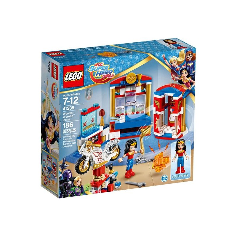 Wskocz do pełnego akcji świata LEGO(R) DC Super Hero Girls! Wonder Woman próbuje właśnie uratować swoje Złote lasso przed Kryptomitą. Ten niesamowity zestaw zawiera minilaleczkę Wonder Woman, sypialnię z otwieranym oknem, łóżkiem z tajną szufladą/ekranem, osobną otwieraną szafę i warsztat, a do tego niewidzialny motocykl, narzędzie/farbę i podejrzanego pomarańczowego Kryptomitę.