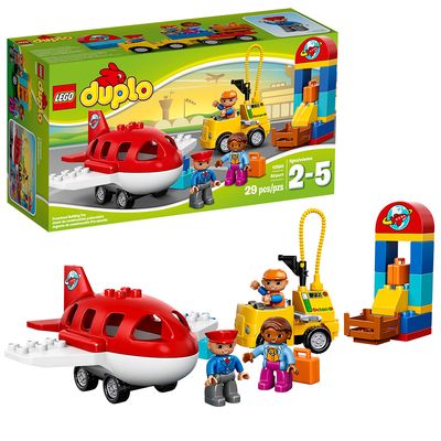 Gotuj się do startu z lotniska LEGO® DUPLO®! Zbuduj punkt odprawy bagażowej i przypilnuj, żeby nikt nie zgubił twoich walizek. Podjedź cysterną, żeby zatankować samolotem przed startem. Posadź pilota w jego fotelu i upewnij się, że wszyscy pasażerowie wsiedli. Można odlatywać! Ten zestaw dostarczy mnóstwa radości wszystkim małych pilotom, pozwalając im rozwijać zdolność budowania i bawić się dwoma łatwymi do rozpoznania pojazdami obsługi lotniska. Użyj tego zestawu, aby objaśnić dziecku działanie lotniska, zanim wybierzecie się w pierwszą wspólną podróż prawdziwym samolotem. Klocki LEGO DUPLO mają jasne barwy i są zaprojektowane tak, by były bezpieczne dla małych budowniczych. W zestawie trzy figurki LEGO DUPLO: pasażer, pilot i pracownik lotniska.