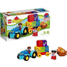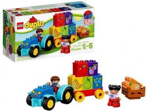 Baw się i ucz dzięki zestawowi LEGO® DUPLO® Mój pierwszy traktor! Za pomocą dużych klocków zbuduj traktor, a następnie umieszczaj w koszu lub wyjmuj z niego kolorowe owoce. Dzięki specjalnym klockom z dekoracjami możesz uczyć swoje dziecko nazw kolorów i owoców. Opowiadaj ciekawe historie za pomocą tego łatwego w budowie zestawu zawierającego duże klocki LEGO DUPLO, które są specjalnie przeznaczone dla małych rączek. W zestawie 2 figurki dzieci LEGO DUPLO.