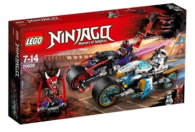 Przekonaj się kto zwycięży w Wyścigu ulicznnego Wężowego Jaguara: diabelski Motocykl Oni Pana E czy fantastyczny motocykl Zane’a. Użyj drona lub miotaczy klocków i zdobądź Maskę Zemsty Oni.
