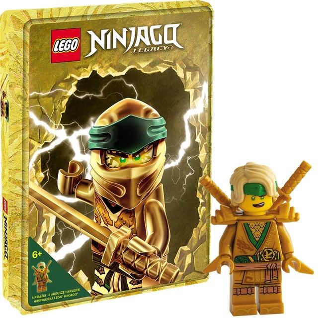 Książki oraz klocki LEGO(R) w oryginalnej metalowej puszce to gratka dla wszystkich prawdziwych fanów LEGO(R) NINJAGO(R). W tej kolekcjonerskiej puszce znajdziesz cztery niezwykłe książki z pełnymi akcji komiksami i zadaniami, cztery arkusze naklejek wielokrotnego użytku oraz wyjątkową, rocznicową minifigurkę Lloyda jako Złotego Ninja!